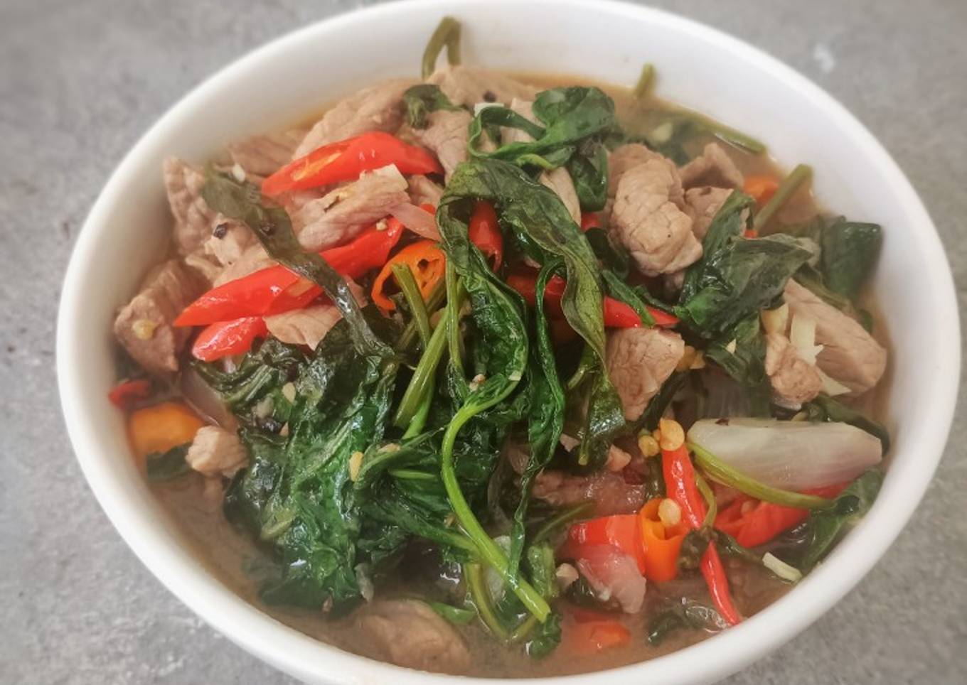 Gimana nih? Simpel kan? Itulah sistem membuat Tumis Kangkung Daging yang bisa Anda praktikkan di kontrakan. Mudah-mudahan berkhasiat dan selamat mencoba!
