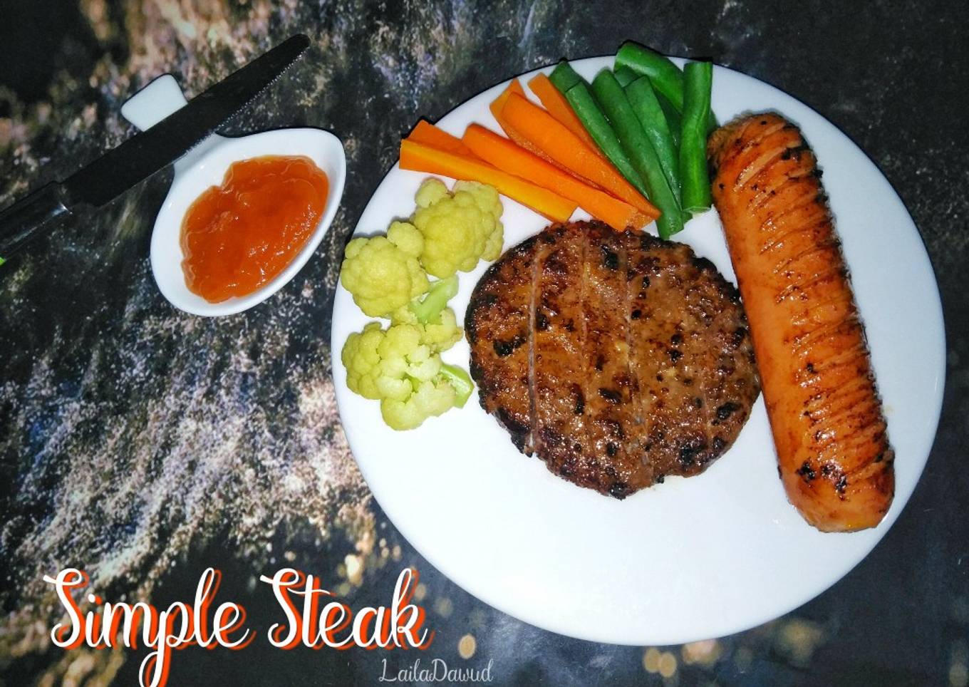 - Tiriskan Steak dan Sayur hidangkan dengan Sauce BBQ.